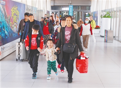 ② 在海口新海港,旅客踏上归途,登船返家。