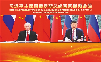 2月4日下午,国家主席习近平在北京人民大会堂同俄罗斯总统普京举行视频会晤。新华社记者 刘彬 摄