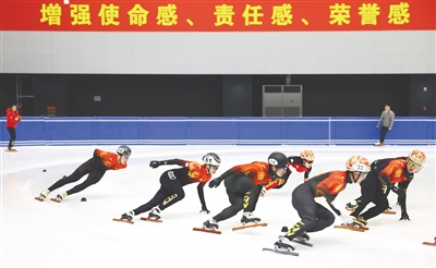 1月29日,米兰冬奥会中国体育代表团短道速滑队在国家体育总局冬季运动管理中心综合训练馆冰坛进行训练,备战即将到来的米兰冬奥会。新华社发