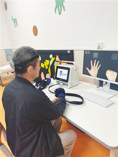 一位患者在进行脑机接口康复治疗。海南省老年病医院供图