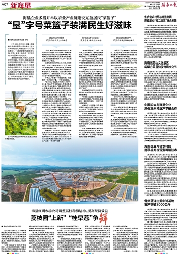“我们希望逐步优化荔枝种植结构,以新品种塑造新优势。”海垦红明农场公司相关负责人表示,目前该公司还建立了荔枝种植资源圃,将持续深化优异种质资源挖掘与开发利用,尝试以品种的差异化,提早荔枝上市时间、延长供应期,从而降低荔枝集中上市造成的销售压力和市场风险,让海垦荔枝持续出圈。