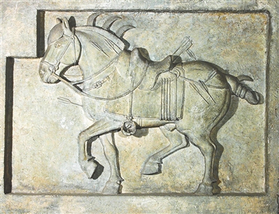 昭陵六骏石刻采用高浮雕手法,其中三匹为立状,三匹为奔驰状,神韵飒爽,造型生动,真可谓“秦王铁骑取天下,六骏功高画亦优”。它们见证了李世民南征北战的卓绝武功。在战场上,它们与李世民并肩作战,立下赫赫战功。其中,飒露紫在战役中身中箭伤,丘行恭为它拔箭,在昭陵石板上定格了这一战争场景。