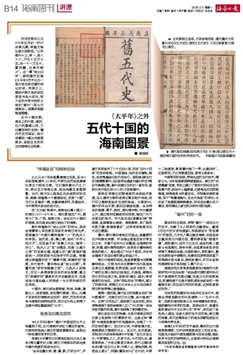 在“大分裂”格局中,海南岛归属十国之一的南汉(917—971年)。南汉都城在广州,据有今广东、广西、海南三地。谈论五代十国时的海南,实则是谈论南汉统治下的海南。