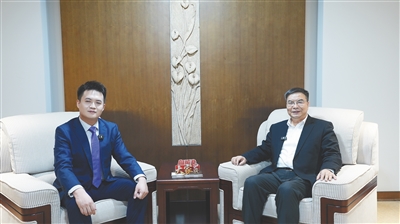 赵忠秀(右)接受《自贸港“大家”谈》节目组专访。