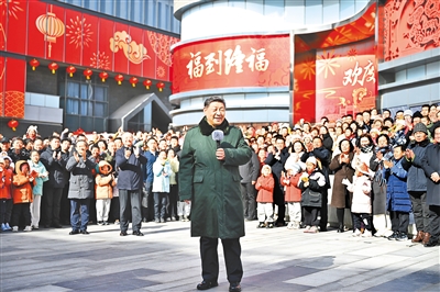 2月9日至10日,中共中央总书记、国家主席、中央军委主席习近平在北京考察并看望慰问基层干部群众。这是10日上午,习近平在东城区隆福寺街区考察时,向全国各族人民和香港同胞、澳门同胞、台湾同胞、海外侨胞致以美好的新春祝福。新华社记者 燕雁 摄