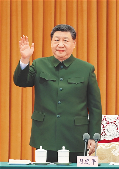 2月10日,中共中央总书记、国家主席、中央军委主席习近平在北京八一大楼以视频方式检查全军战备值班和执行任务情况,亲切慰问有关部队,代表党中央和中央军委,向全体人民解放军指战员、武警部队官兵、军队文职人员、预备役人员和民兵致以诚挚问候和新春祝福。这是习近平向官兵挥手致意。新华社记者 李刚 摄