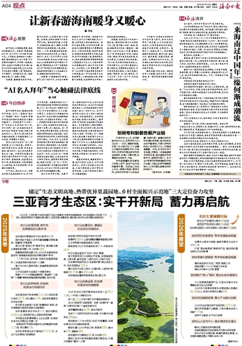 今年春节,是海南自贸港封关运作后的首个春节,高关注度也带来了高流量,从文化体验到民俗游乐,从体育竞技到休闲度假,旅客们各取所需,各得其乐。选择多了,体验也深了。这份暖意融融的新春体验,暖在气候、暖在文化、暖在新意,更暖在服务、暖在每一份真诚的坚守与付出。这是海南文旅升级的生动注脚,更是海南自贸港开放活力与发展温度的真实写照。