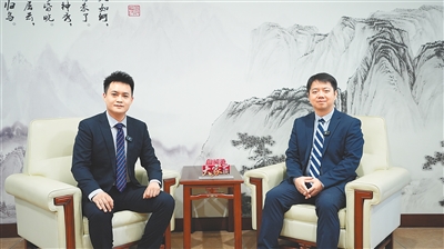 王文(右)接受《自贸港“大家”谈》节目组专访。
