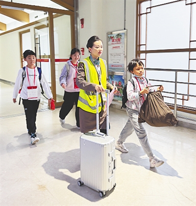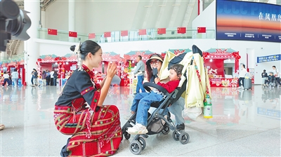 ① 近日,琼海博鳌机场工作人员陪护“单飞”的小旅客。海南日报全媒体记者 王子豪 摄
