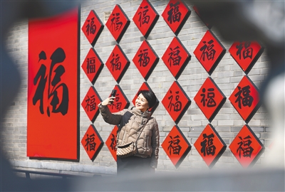 “马年大吉!”2月15日一早,北京首都国际机场2号航站楼入境大厅,北京边检总站的民警们手捧福字,向刚通关的外国游客送上新春问候。
