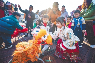 交通运输部预测,春节9天假期日均全社会跨区域人员流动量或创春节假期新高,日均人员流动量将达到2.99亿人次。平台数据显示,灯会、庙会、游园会等非遗民俗活动搜索热度同比提升超100%。与此同时,年味浓,春光好,世界游客向东行,尽情领略中华文化的无穷韵味。