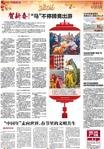 佳节有传承,乡愁有寄托,文化有回响。2026年新春伊始,归家旅途上,有团圆的憧憬;度假风景里,有诗意的向往;漫步休闲中,有国风的滋养。“最长春节假期”过半,人们出游兴致不减,“马”不停蹄奔向远方。