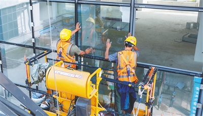 “稳住!再精准一点,玻璃幕墙对接要严丝合缝,可不能马虎!”来自四川的施工师傅李明,一手紧握操作杆,一手比划着指令,额头上的汗珠顺着脸颊滑落。