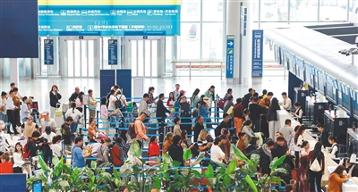 为了应对返程高峰,海南机场在民航驻琼监管部门及省交通运输厅的指导下,会同18家在琼运营航司做好航空运输市场监测,灵活调配运力,通过加班、调整大机型等措施满足热门航线、热门目的地的临时需求。