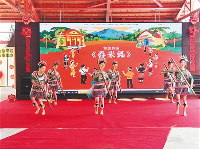 黎族舞蹈《舂米舞》表演现场。海南日报全媒体记者 黄富国 通讯员 刘婳婳 摄