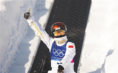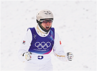 2月20日,中国选手王心迪在自由式滑雪男子空中技巧决赛中获得冠军。新华社发