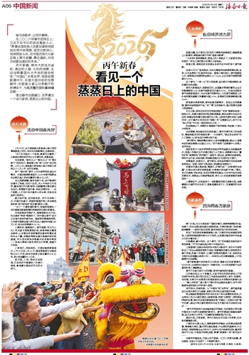 丙午新春,神州大地流光溢彩,涌动的人潮、火热的消费,生动诠释着国内大市场的强劲韧性;“中国红”点亮世界、免签政策联通中外,尽显大国开放的包容胸怀;无数奋斗者以只争朝夕的拼搏实干,为高质量发展积蓄磅礴动能……