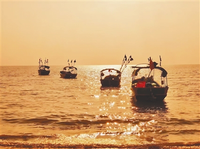 东方利章港,渔船和夕阳构成一幅唯美画面。
