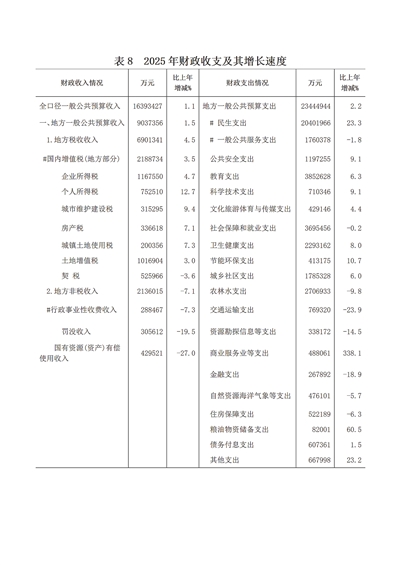全年全省全口径一般公共预算收入1639.34亿元,比上年增长1.1%。其中,地方一般公共预算收入903.74亿元,增长1.5%。地方一般公共预算收入中,税收收入690.13亿元,增长4.5%;非税收入213.60亿元,下降7.1%。全省地方一般公共预算支出2344.49亿元,增长2.2%。