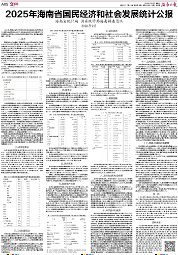 1.本公报部分数据为初步统计数,部分数据为预计数,最终核实数以中国统计出版社出版的《海南统计年鉴—2026》公布的数据为准。