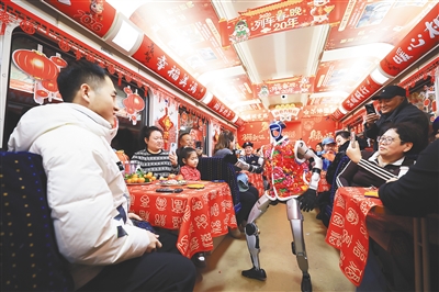 在列车“春晚”上走红的仿生机器人。新华社发