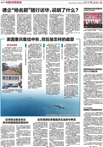 诚然,经贸交往难免存在分歧,但平等互惠、合作共赢是中德关系最鲜明的特色。约30家头部企业高管与德国总理同行,商业决策与政策沟通同频共振,这传递出发展对华务实合作的积极信号。德国媒体普遍认为,默茨此行将为中德乃至中欧关系注入新动能。正如默茨在访华前夕所强调的,“我们有战略利益去寻找世界上与我们想法一致、行事方式相同的合作伙伴,最重要的是他们愿意与我们共同塑造未来”。对德国工商界而言,用实际行动“选择中国”,正是迈向这一未来的生动注脚。