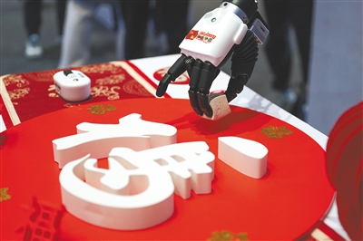 人形机器人展示抓取豆腐。本栏图片均由新华社发