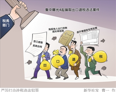 新华社北京2月27日电(记者刘开雄)记者27日从国家税务总局获悉,当日,天津、黑龙江、贵州、重庆等地税务部门集中曝光4起骗取出口退税违法案件,个案最高涉案金额超2亿元。从曝光内容看,这些案件所涉犯罪手法隐蔽、关系链条复杂,短时间内骗取出口退税金额较大,引人关注。如,2020年至2022年间,以杨荣栋为实际控制人的天津市润兴泰供应链管理服务有限公司等3家公司,通过签订虚假买卖合同、购买他人出口货物报关单信息、接受上游企业虚开增值税专用发票等违法手段骗取出口退税。最终,税务部门对涉案的3家企业追缴骗取出口退税款2.01亿元,三年内停止为其办理出口退税。目前,杨荣栋等6人因涉嫌骗取出口退税罪等被提起公诉。