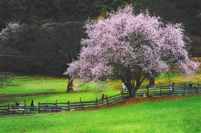 这就是海拔3000米的春天,藏地的风裹着桃花香掠过经幡,将千年花信带往更辽阔的时空——那些关于桃的故事,正从《诗经》的韵律里,向我们展开带着露水的卷页。每逢桃花盛开的时节,藏族姑娘们会在辫梢别上三瓣桃花,如同《诗经·桃夭》里“桃之夭夭,灼灼其华”的遥远呼应。当藏族同胞把桃枝插在经筒旁,当桃花落在转经人的肩头,某种跨越时空的默契在花瓣的脉络里静静流淌——人类对美好事物的向往,原是相通的密码。