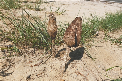 同样的奇遇在四个月后再次发生。同年5月的某一天,海南昌江海尾国家湿地公园管理中心副主任薛美丽在昌江黎族自治县一处沙滩上拍鸟。阳光炙烤着沙滩,脚下的沙子烫得几乎站不住人。她不经意低头的一瞬间,也看见了这种真菌。
