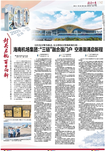 海南自贸港封关运作百日,是海南机场集团砥砺奋进的新起点。站在新的历史方位,海南机场集团将在海南控股的坚强领导下,持续深化党建引领,以“三链”融合为核心抓手,充分释放自贸港政策红利,加快建设世界一流国际航空枢纽,在服务海南自贸港高水平开放、高质量发展的征程上,书写更加亮眼的空港答卷,让自贸港空中门户在开放大潮中绽放更加耀眼的光芒!(本报海口3月26日讯)