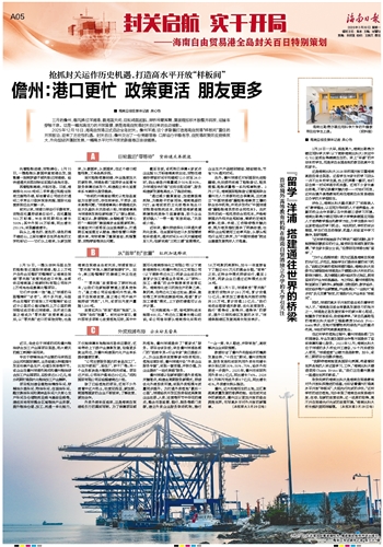 ■ 海南日报全媒体记者 吴心怡三月的儋州,春风拂过洋浦港,碧海蓝天间,巨轮鸣笛起航,岸桥吊臂挥舞,集装箱如积木般整齐码放,运输车穿梭不息。这是一幅充满活力的开放图景,更是海南自贸港封关百日来的生动缩影。