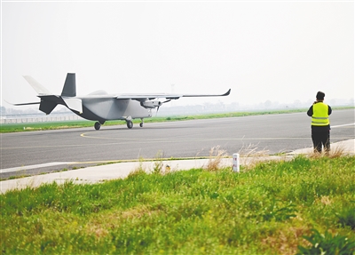 3月31日上午,我国首款7吨级固定翼运投无人机长鹰-8在郑州上街机场首飞成功。新华社发
