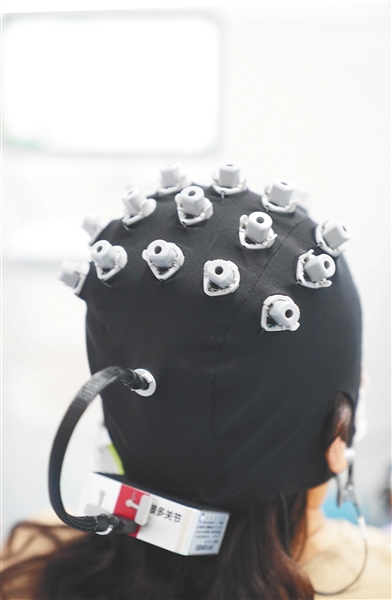 3月26日,在海南省老年病医院,72岁的李阿公头戴一款轻便的无线脑电采集设备,接受了一场由大脑主导的康复治疗。