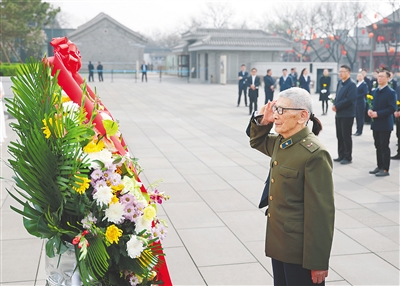 ③4月2日,人们在河南省商丘市睢县睢杞战役烈士陵园向革命先烈敬献鲜花。