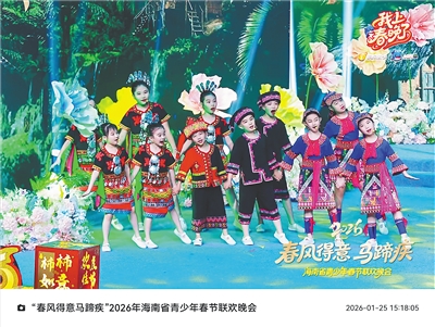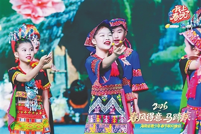 五指山市雨林童声合唱团成员参加2026海南省青少年春节联欢晚会。