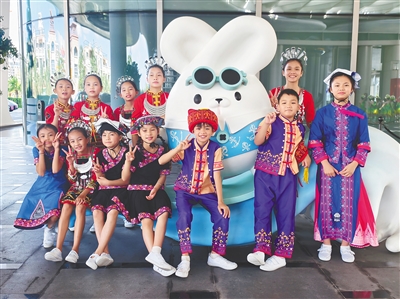 五指山市雨林童声合唱团部分成员合影。