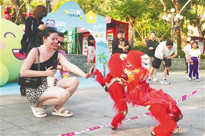 外籍游客在活动上与机器狗互动。海南日报全媒体记者 王程龙 摄