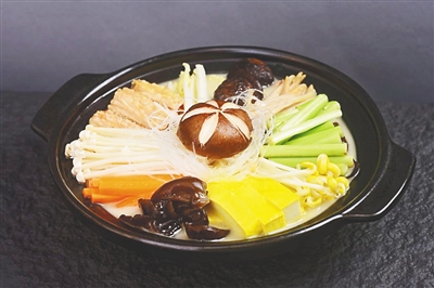 在琼北,斋菜煲是过年必吃的美食。一些人家会特意挑选更有嚼劲的黑豆芽,将其与水芹、荞头、粉丝、腐竹、木耳等素菜放入煲中慢炖。