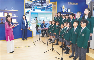消博会上,英雅盛彼德学校的学生用英文合唱海南本土民歌《久久不见久久见》。