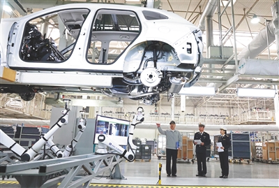 河北保定海关关员在保定长城汽车股份有限公司总装车间调研。