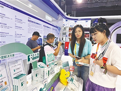 一位来自杭州的医美机构负责人在展台前停留了许久。她告诉记者:“我们机构缺少专业的术后修复产品,这次专程来消博会考察寻求合作。”