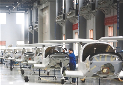 工人在位于浙江省新昌县的万丰飞机工业有限公司厂房工作。新华社发
