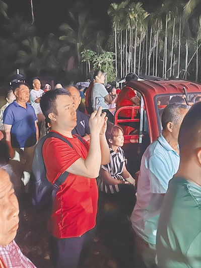 4月15日晚,邓武在文昌市蓬莱镇用手机拍摄琼剧视频。