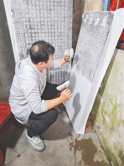 刘韬颖在拓古碑。