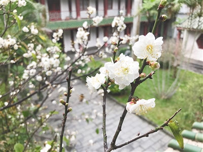 琼台师范学院里的梅花。