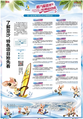 本报今日推出“观赛指南”,带您一窥精彩赛事。首先我们向大家普及一下这届亚沙会的特色项目。