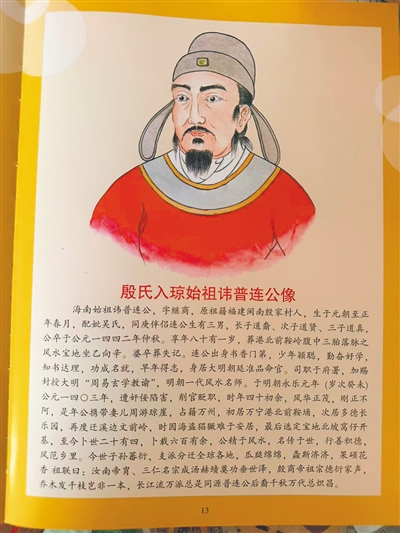 殷氏入琼始祖普连公像。海南日报全媒体记者 林博新 翻拍
