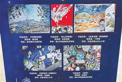 “向星辰绘航天”主题绘画大赛部分获奖作品。海南日报全媒体记者 刘冀冀 摄