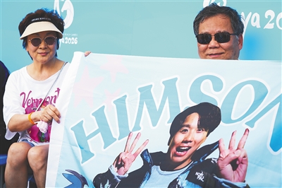 本报三亚4月26日电(海报集团全媒体中心记者刘杰)4月26日上午,第六届亚洲沙滩运动会沙滩手球的赛场上,中国香港队与伊朗队的比赛激战正酣。场边的看台上,坐满了前来观战的球迷,呐喊声、喝彩声此起彼伏。“儿子,加油!加油!”人群中,一对中年夫妇手持着定制的加油横幅,正高声为赛场上奋力拼搏的儿子加油鼓劲。他们用力晃动的横幅上,“陈家谦”的字样在阳光下十分显眼。